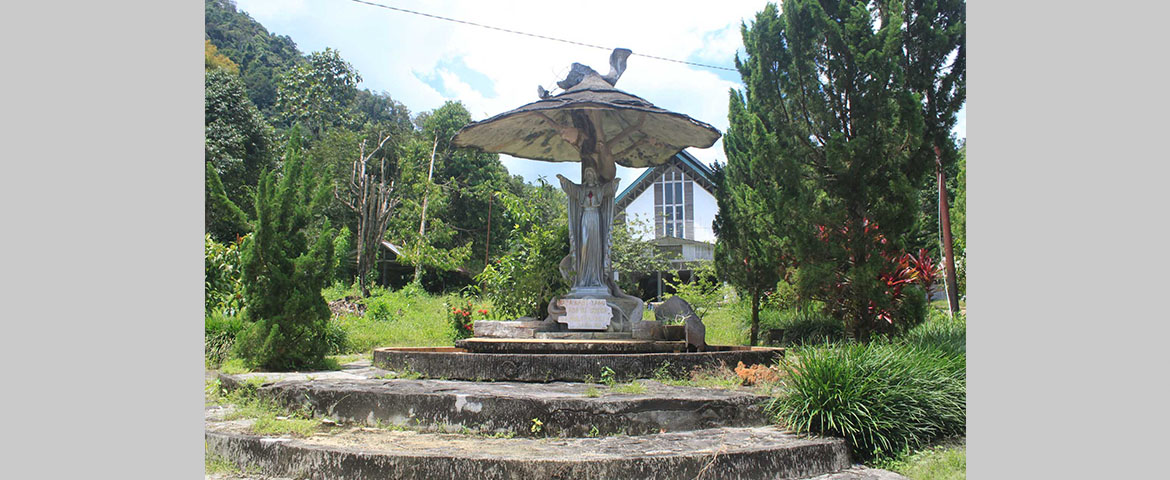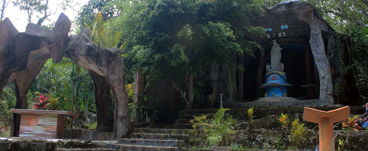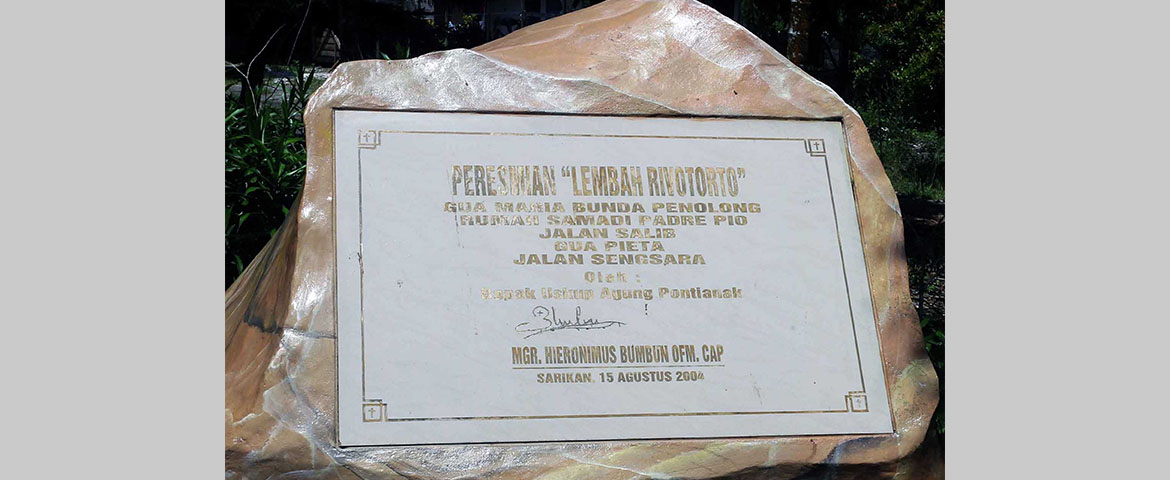 Goa Maria Lembah Rivotorto berlokasai di Desan Terap sekitar 5.000 meter dari jalan raya, Kecamatan Toho, Kabupaten Mempawah